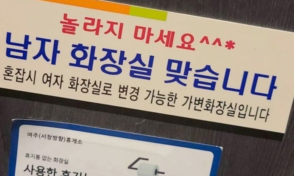 Artikel tersebut melampirkan foto tandas awam lelaki yang terletak di kawasan Yeoju. Tajuk yang diletakan adalah jangan terkejut. Ini kerana, tandas lelaki ini dikatakan boleh berubah menjadi tandas wanita dalam hal terdesak.