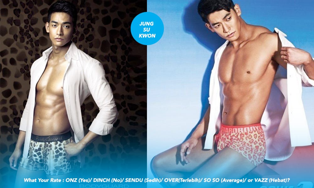 Nak kata Jung Sung kacak tak juga. Nak kata seksi tidak jugak. Tapi pesona yang ada pada Jung Su Kwon cukup menonjolkan dia sebagai model majal untuk pakaian dalam. Tanpa sarat dengan gaya, setiap seluar dalam yang dipakainya memang seksi dan menarik perhatian. Serba serbi tip top.