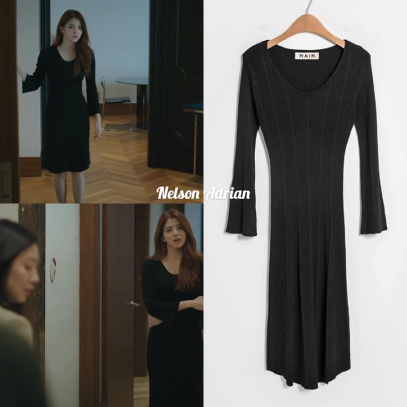 Da Kyung wearing a Black Slim flare knit dress-(OP-4721) from NAIN, USD50. She was not able to prepare for Doctor Ji’s blast. Just knit because she is confident that she is beautiful.